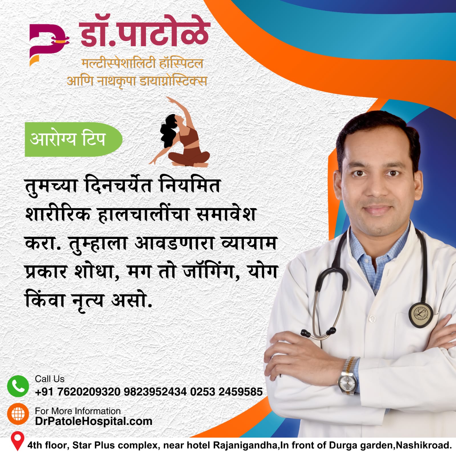 “तुमच्या दिनचर्येत नियमित शारीरिक हालचालींचा समावेश करा. तुम्हाला आवडणारा व्यायाम प्रकार शोधा, मग तो जॉगिंग, योग किंवा नृत्य असो.” – डॉ. प्रशांत पाटोळे